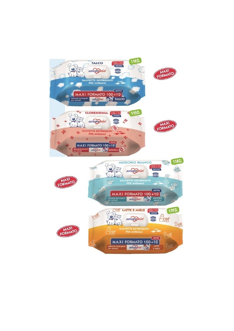 Salviette detergenti per la pulizia del manto del tuo cane e del tuo gatto maxi formato 100+10.